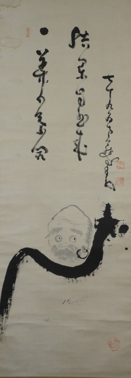 | 紙本 巾 47.0cm 高さ 131.0cm 絹装 総丈 巾 55.0cm 高さ 118.0cm 合箱 本紙上部にシミ汚れあり。 |