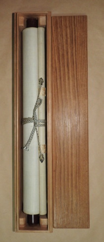 | 絹本 巾 36.5cm 高さ 102.0cm 絹装 総丈 巾 40.5cm 高さ 191.0cm 合箱 |
